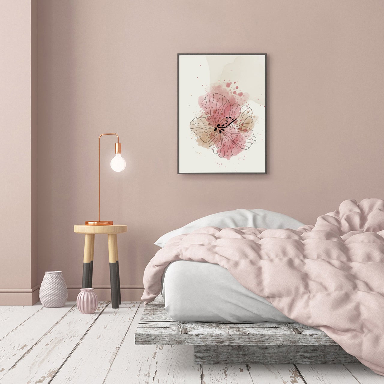 水彩風に花を描いたイラストポスターです。
